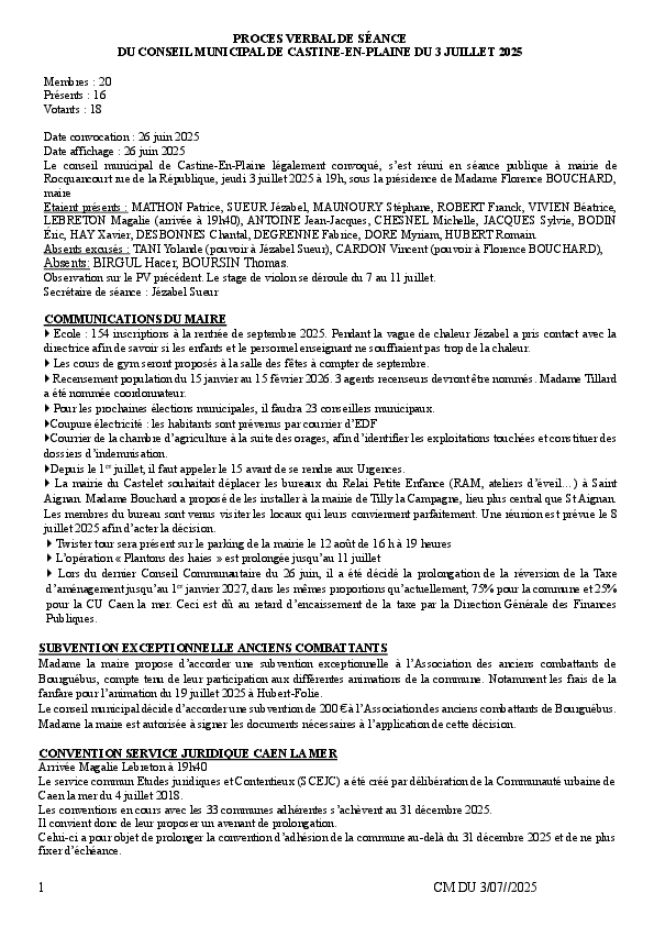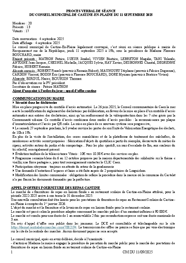 Archives des Compte-rendus du Conseil Municipal - Castine en Plaine